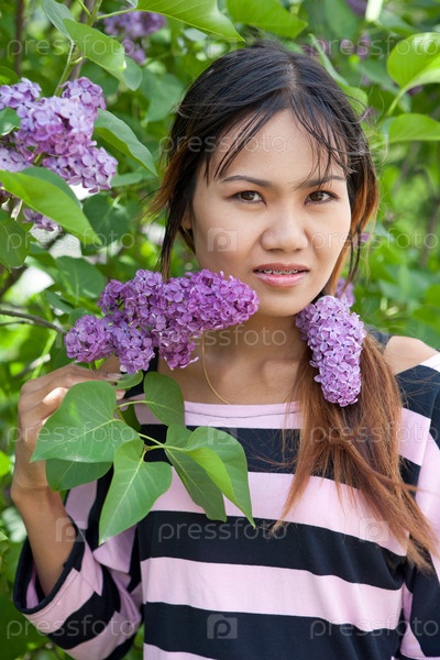 Красивая тайская женщина с брекетами в парке