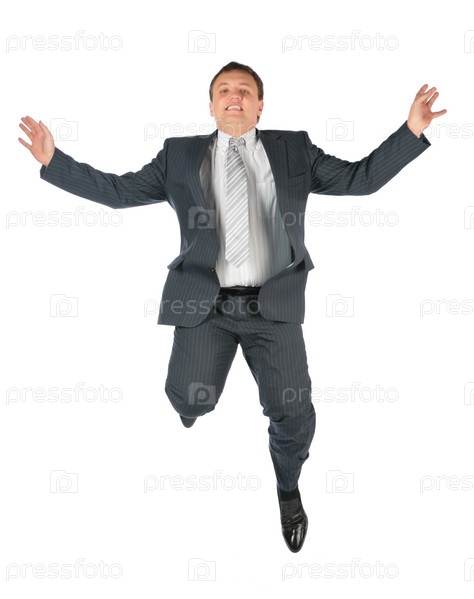 Человек в костюме подпрыгивает