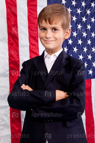 Европейский мальчик на фоне американского флага