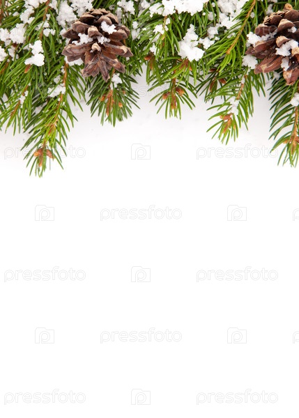 Рождественская рамка со снегом и шишками