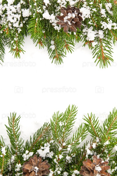 Рождественская рамка со снегом и шишками
