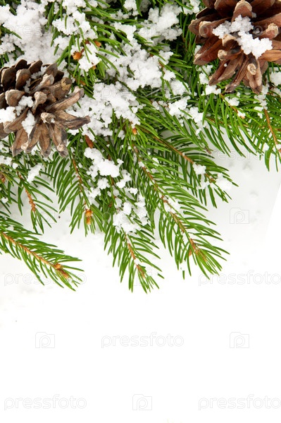 Рождественская рамка со снегом и шишками