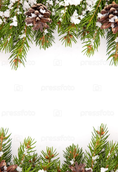 Рождественская рамка со снегом и шишками