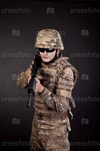 Современный солдат с ружьем