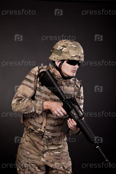 Современный солдат с ружьем