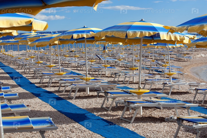 Пляж с параллельными линиями зонтиков