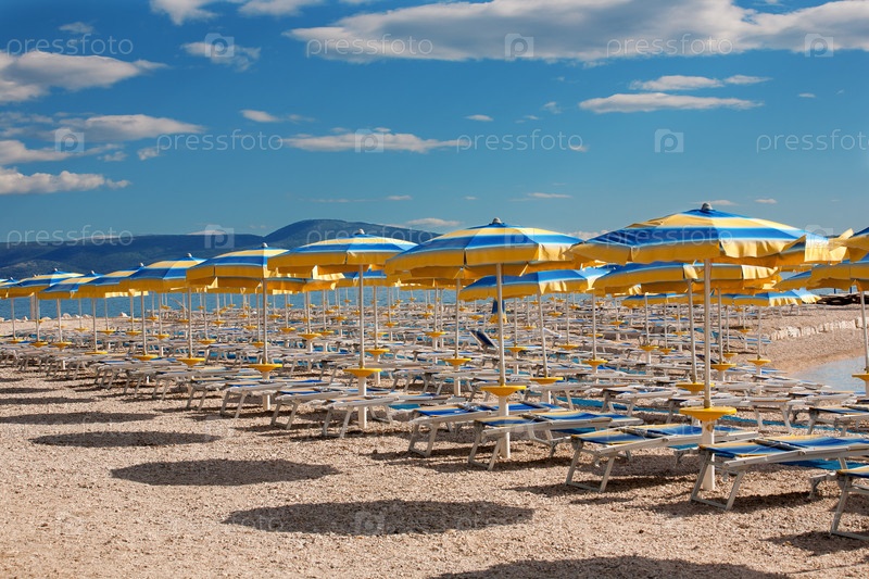 Пляж с параллельными линиями зонтиков