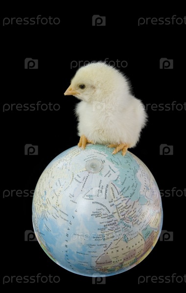 Желтый цыпленок на глобусе