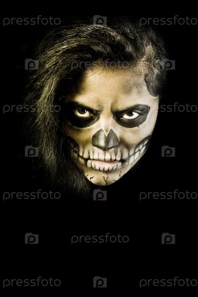 Молодая женщина в маске черепа. Макияж на Хэллоуин