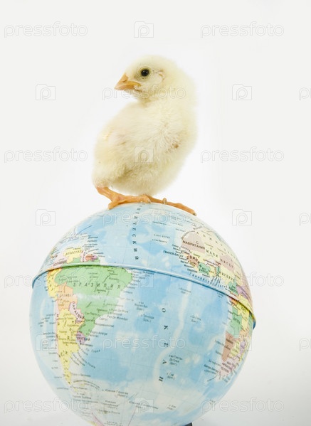 Желтый цыпленок на глобусе