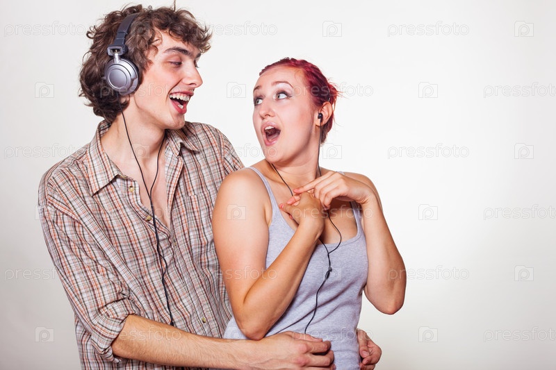 Молодая пара слушает музыку