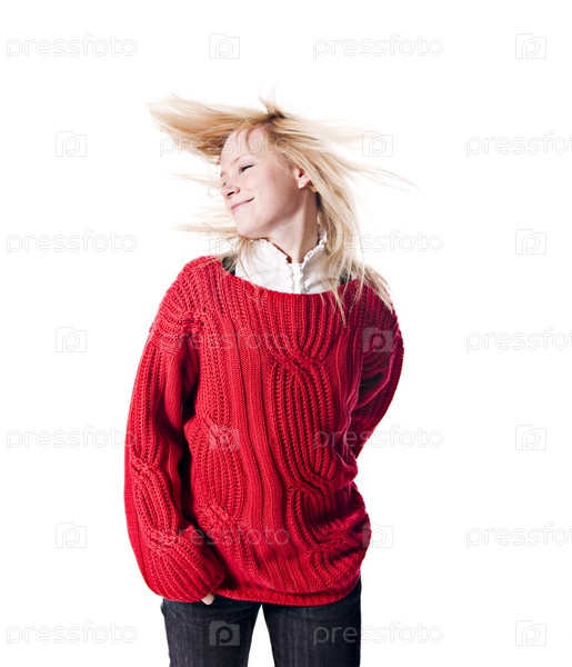 Портрет молодой девушки в красном свитере
