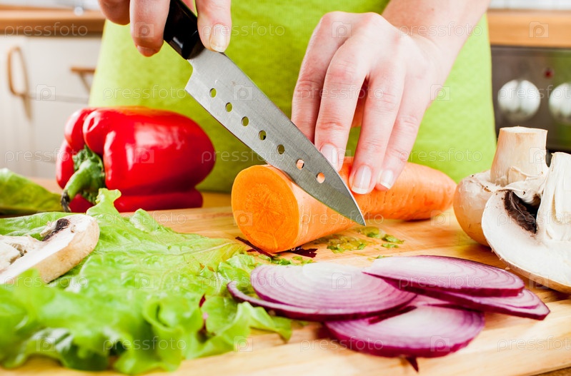Женские руки режут овощи
