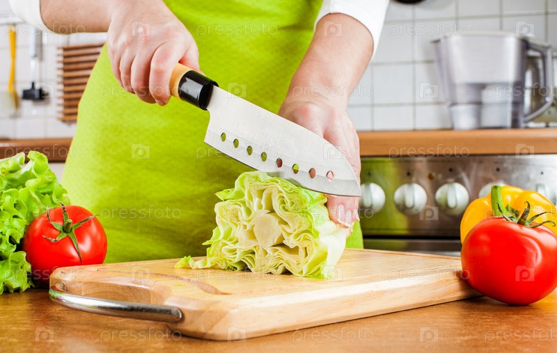 Женские руки режут овощи