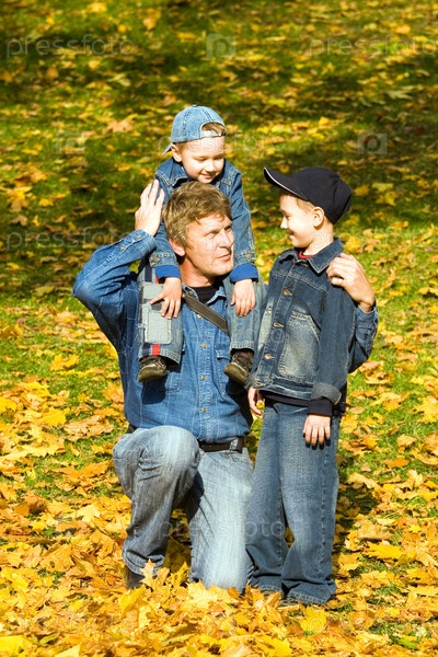 Отец и сыновья в яркий осенний день