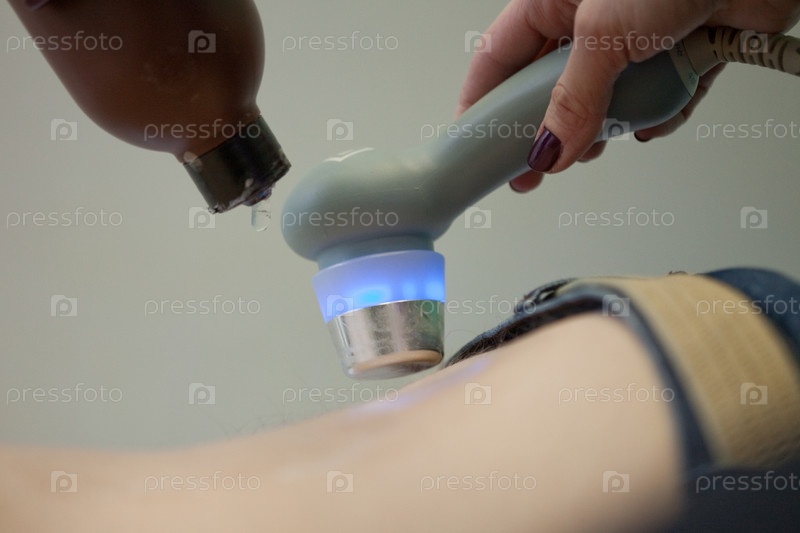 Физиотерапевт лечит пациента ультразвуковым устройством