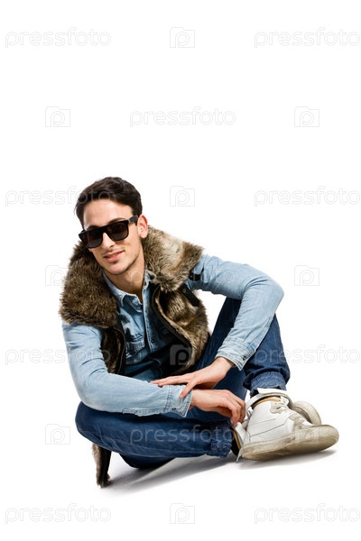 Модный парень на белом фоне