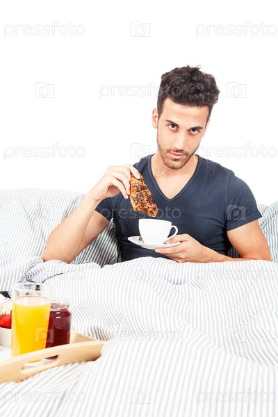Мужчина завтракает в постели