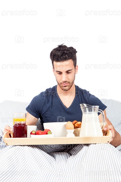 Мужчина завтракает в постели