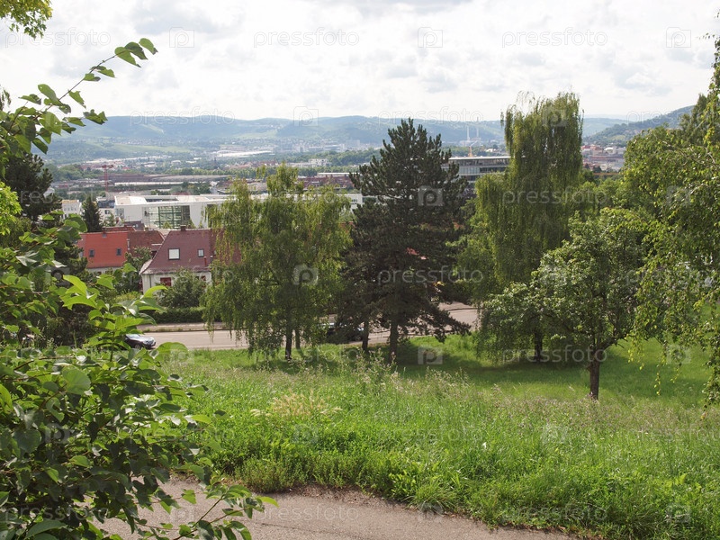 Вид города Штутгарт с холма Вайссенхоф в Германии
