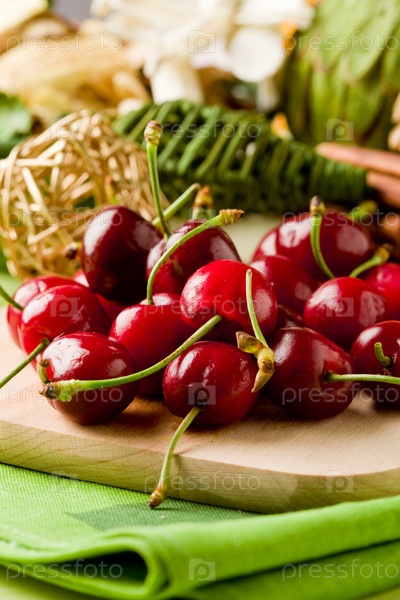 Вишневый десерт на разделочной доске