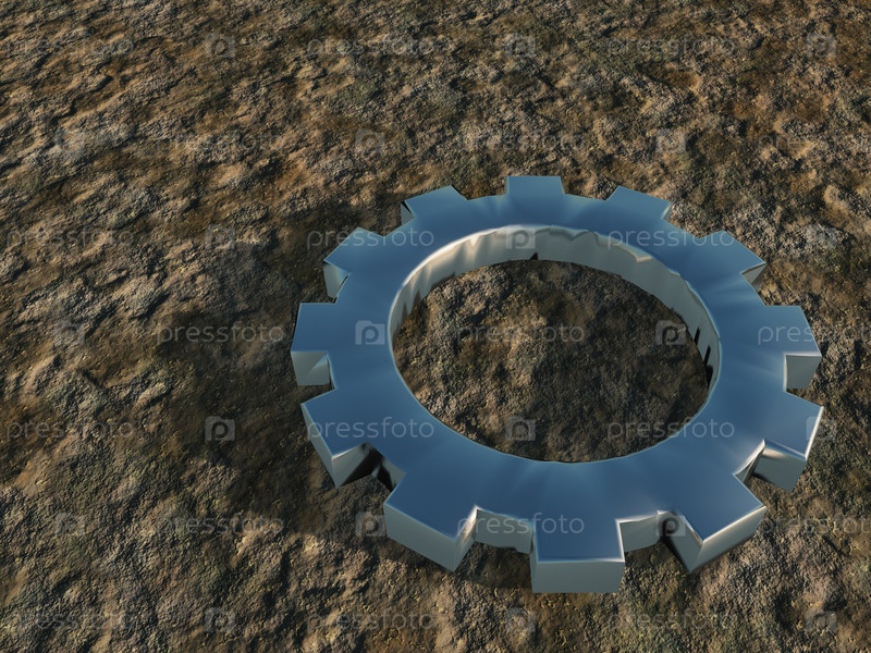 Зубное колесо на каменной поверхности. 3d иллюстрация