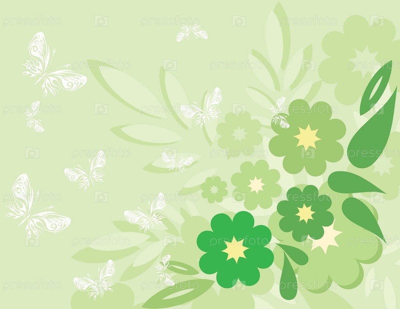 Цветы и бабочки - зеленый фон Вектор