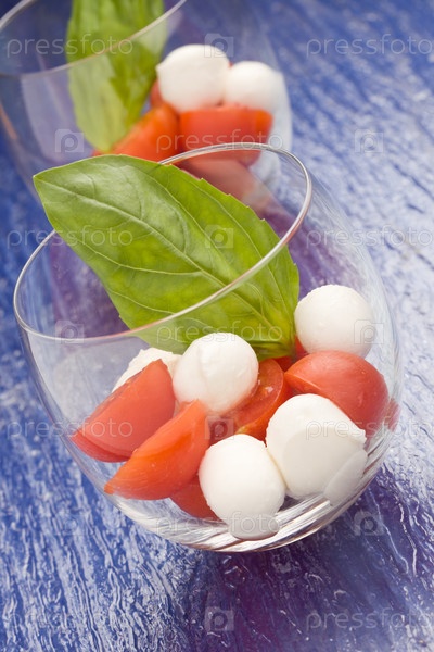 Закуска капрезе с томатами и моцареллой в стакане