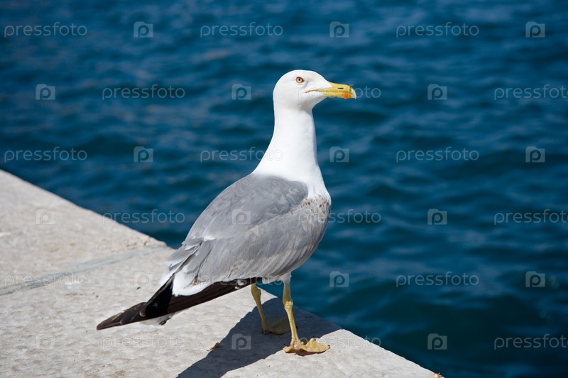Красивая чайка на берегу моря