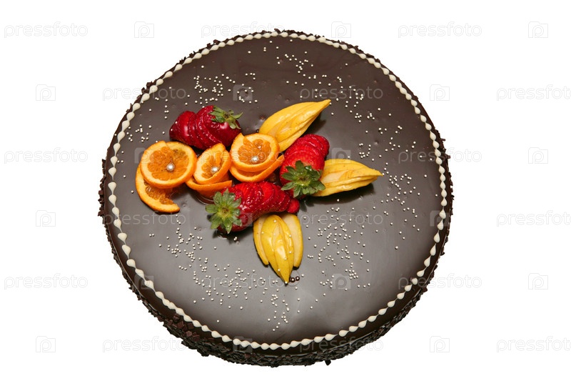 Шоколадный торт, украшенный фруктами