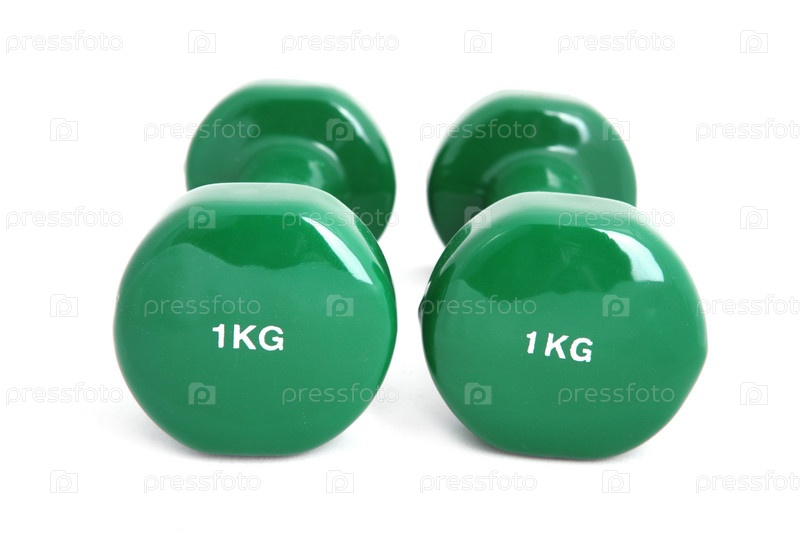 Резиновые гантели весом 1 кг на белом фоне