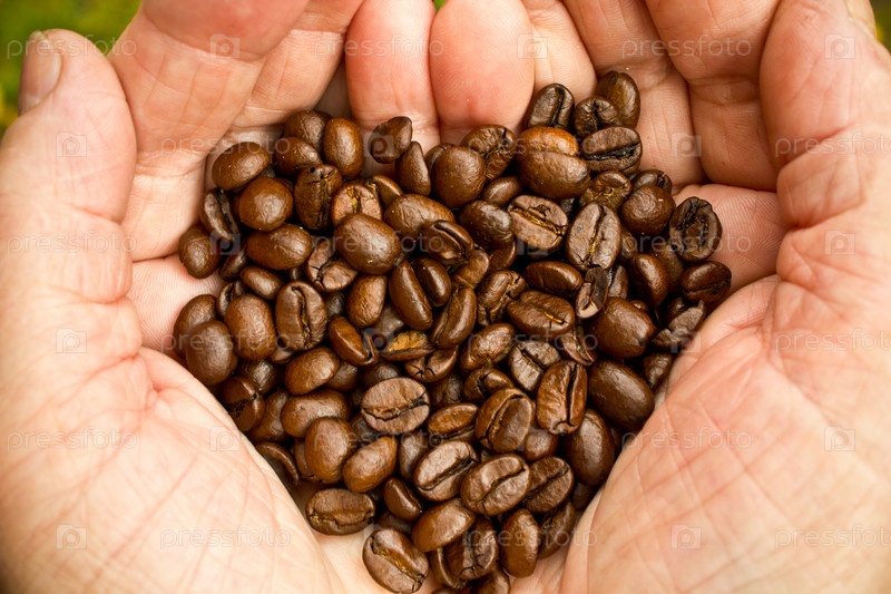 Зерна кофе в руках