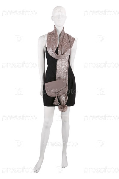 Манекен в черном платье, шарфе и с сумкой
