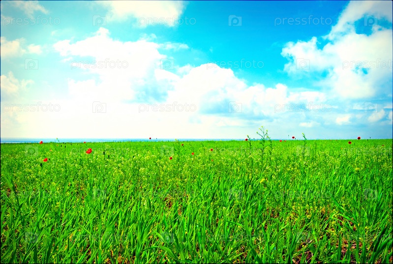 Поле с красными цветами мака в стилизованной обработке