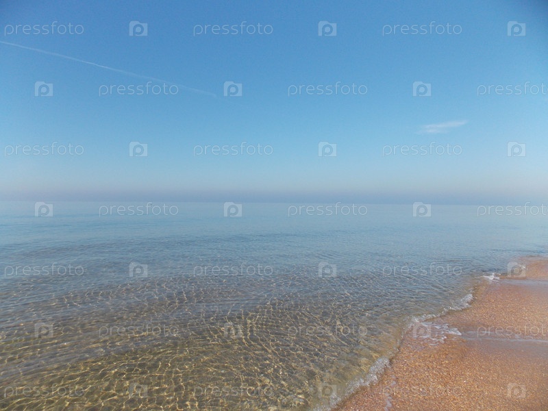 Голубое небо, прозрачное море и красивый пляж из ракушек