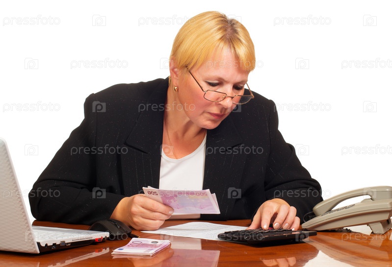 Взрослая бизнес-леди считает деньги