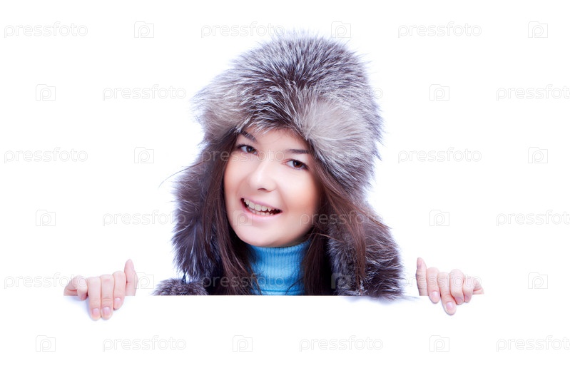 Зимня женщина с баннером