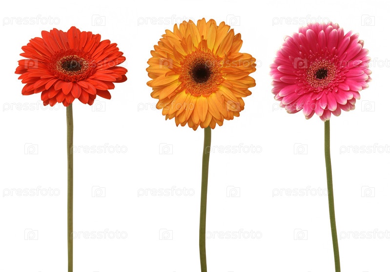 Три герберы, изолированные на белом