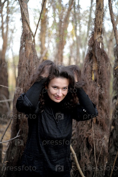 Готическая девушка в парке рядом с деревом