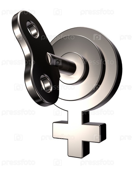 Металлический женский символ с ключом - 3d иллюстрация