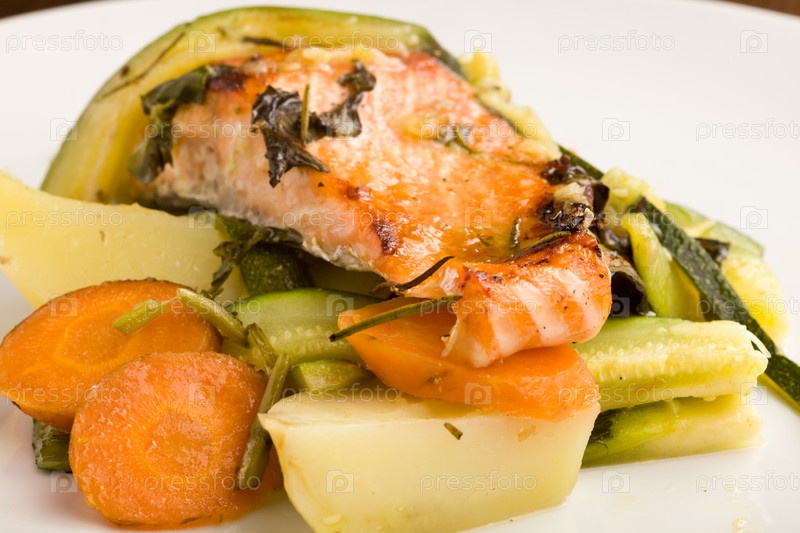 Запеченный лосось с овощами