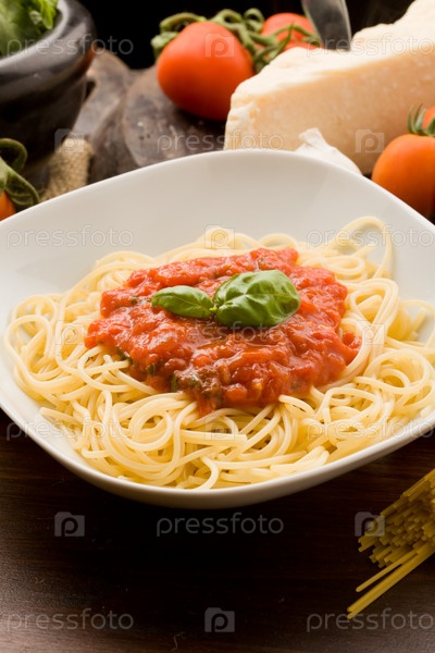 Макароны с соусом из помидоров и ингредиенты
