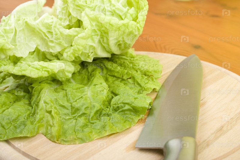 Листья салата на разделочной доске