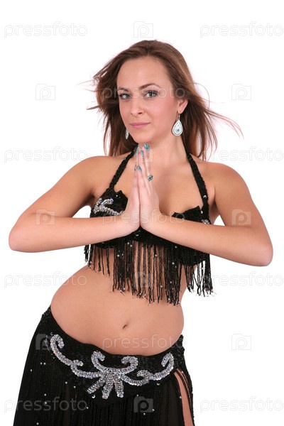 Привлекательная танцовщица живота с длинными светлыми волосами