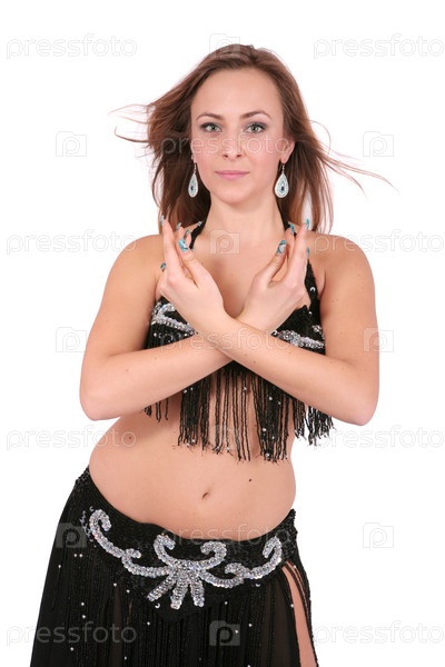 Привлекательная танцовщица живота с длинными светлыми волосами