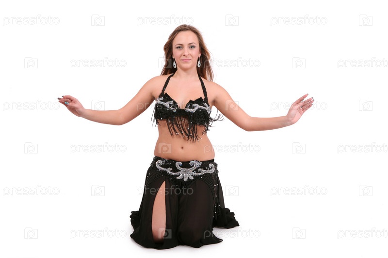 Привлекательная танцовщица живота с длинными светлыми волосами