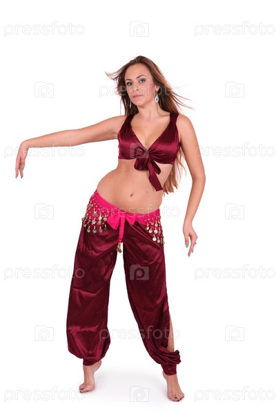 Привлекательная танцовщица живота в красном костюме