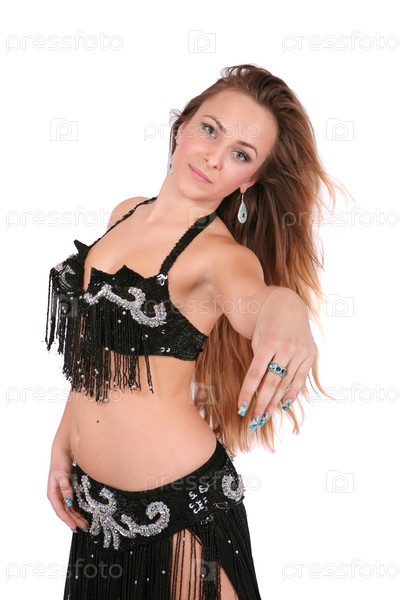 Привлекательная танцовщица живота с длинными светлыми волосами