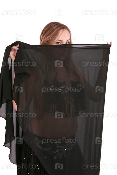 Привлекательная танцовщица живота закрывает лицо