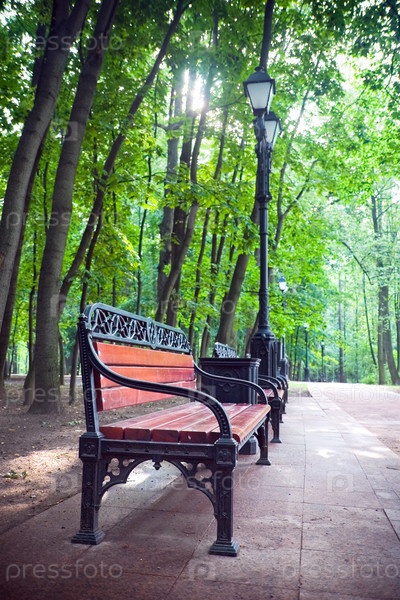 Старинная скамейка в городском парке
